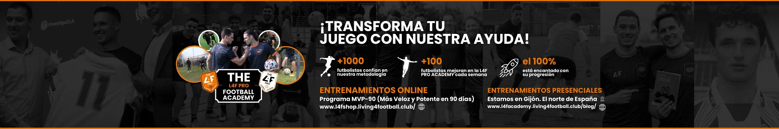 En L4F PRO transformamos tu rendimiento futbolístico con una metodología de entrenamiento de ÉLITE diseñada para maximizar tu potencial dentro y fuera del campo. Nuestra misión es proporcionarte todas las herramientas para alcanzar tu máximo nivel desde cualquier parte del mundo. Creamos contenido práctico, educativo e inspirador para que mejores cada aspecto de tu juego y te conviertas en un verdadero MVP. Desde 2016, hemos evolucionado con la publicación de 'La guía del futbolista: Todo lo que nos hubiera gustado saber', la creación de nuestra academia de alto rendimiento en Gijón, L4F PRO Academy, y el desarrollo del programa MVP-90: 'Más Veloz y Potente en 90 días', que ha ayudado a futbolistas de todo el mundo a superar sus límites. Con entrenamientos presenciales y nuestro programa online, estamos aquí para que alcances tus objetivos futbolísticos. ¿Estás listo para llevar tu juego al siguiente nivel? ¡Bienvenido!