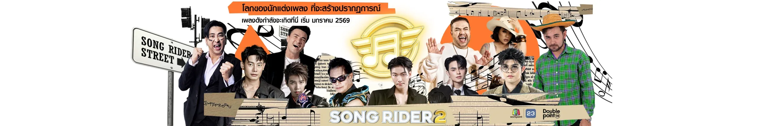 SONG RIDER – เวทีการแข่งขันของนักแต่งเพลงจากทั่วประเทศ สู่การสร้างสรรค์บทเพลงใหม่ให้กับศิลปินชื่อดังในแต่ละสัปดาห์ ร่วมติดตาม 10 ศิลปิน กับ 10 บทเพลงสุดพิเศษ ที่จะถูกถ่ายทอดจากปลายปากกาของนักแต่งเพลง และค้นหาเพลงที่ถูกใจผู้ฟังมากที่สุด บทเพลงที่มียอดวิวสูงสุดจาก YouTube 3 อันดับแรก นับยอดวิว หลังจากปล่อยเพลง 7 วัน ทุกพุธ 3 ทุ่ม จะสรุปยอดวิว ในรายการ 3 เพลงแรกที่มียอดวิว สูงสุด จะผ่านเข้าสู่รอบชิงชนะเลิศ ถ่ายทอดสดจาก Workpoint Studio บทเพลงไหนจะถูกใจมหาชน? บทเพลงใดจะคว้าแชมป์ SONG RIDER? ร่วมติดตามและเป็นส่วนหนึ่งของปรากฏการณ์เพลงที่คุณไม่ควรพลาด! พบกับรายการ SONG RIDER ทุกวันพุธ เวลา 20.05 น. ทาง ช่องเวิร์คพอยท์ หมายเลข 23