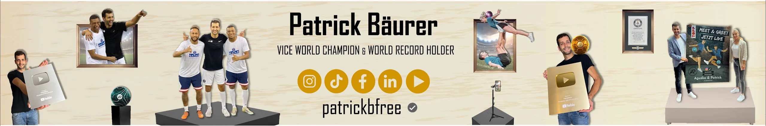 ✝️⚽️💛 🥇 16 x GUINNESS WORLD RECORD HOLDER 🏅 VICE WORLD CHAMPION 🎥 Football Tic-Tac-Toe . Happy that you are here 😍❤️ #patrickbfreefamily Join my journey meeting the greatest football players on this planet like Neymar, Mbappe, Kroos… and have a freestyle session with them 😱 Beside this I will show you every day my best tricks and craziest trickshots, pannas and Duo skills with aguskafree 🔥⚽️ #apfreestylefamily . 👇 Collaborations and work inquiries: ✉️ [email protected] 🌎 www.apfreestyle.com