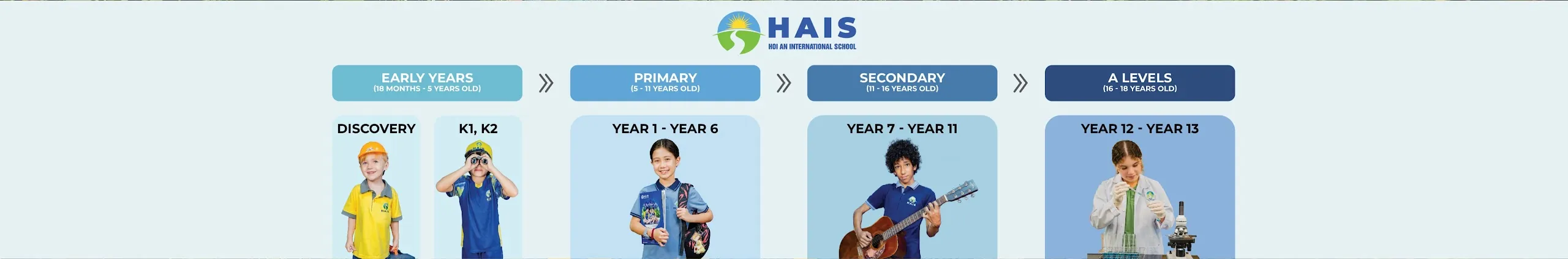 Hoi An International School (HAIS) is one of the leading international schools in Danang and Hoi An, Vietnam, offering Kindergarten to IGCSE and A Level programmes. Through our unique learning environment, we strive to spark curiosity in all our students so they may find their passion and realize their dreams. See more: https://hais.edu.vn Hotline: 02356 518 518 Email: [email protected]