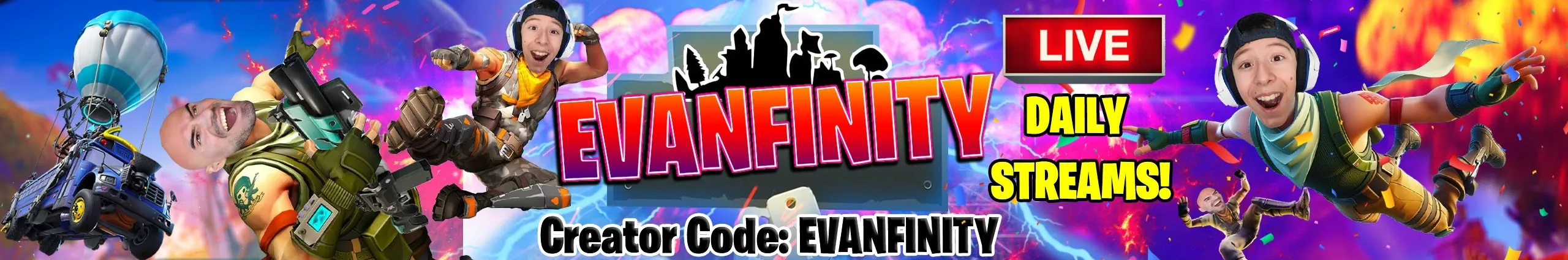 Hi guys! My name is Evan. I love playing Fortnite, streaming, and making fun videos to share on Youtube. Thanks for watching! Creator Code: EVANFINITY *THIS CHANNEL/ACCOUNT IS OWNED AND MANAGED BY ADULTS (EVAN'S PARENTS)*