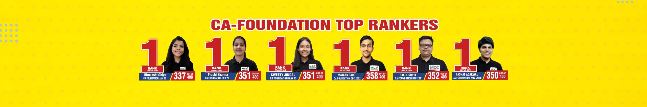 MCC – Mittal Commerce Classes is India’s best CA coaching institute. With a dedicated team of expert faculties under the close supervision of Directors, MCC has turned out to hold a large number of RANK HOLDERS in CA CPT/Foundation, IPCC/Intermediate and Final exam at ALL INDIA LEVEL. For the last 25 years, we are continuously providing AIRs in CA – Foundation, CA – Intermediate and CA – Final because of enormous efforts of best faculty team with extra-ordinary teaching techniques, proper guidance, and guidelines to achieve the highest level of CA. Now MCC has become the ‘HUB’ of CA preparation.