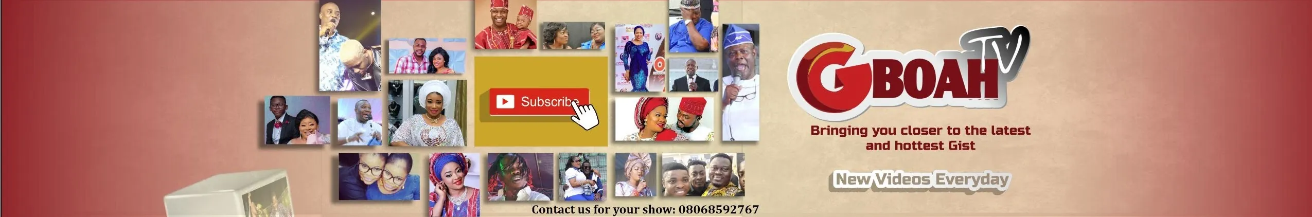 Welcome to GboahTv, Nigeria's No1 online TV media platform! π¬π We're your one-stop destination for the latest Nollywood news, celebrity parties, events, and the hottest gists. ππΏ Subscribe for daily entertainment and comedy videos that will keep you engaged and entertained. πΊπ Need exceptional event coverage? π₯ Gboah Tv is at your service! We cover weddings, fashion shows, birthday parties, music video shoots, and more! π€π Make your event the talk of the town with our top-notch services. Contact us at +2348068592767 or email [email protected] to book. ππ© Looking to advertise or share a news tip? π° We've got you covered! Reach out to us at +2348068592767 or email [email protected] for all your advertising, press release, and news tip-off needs. π’π Join the GboahTv family today! π³π¬π Our social media links.. Instagram: https://www.instagram.com/officialgboahtv/ Tiktok: https://www.tiktok.com/@gboahtv Facebook: https://www.facebook.com/GboahTv/