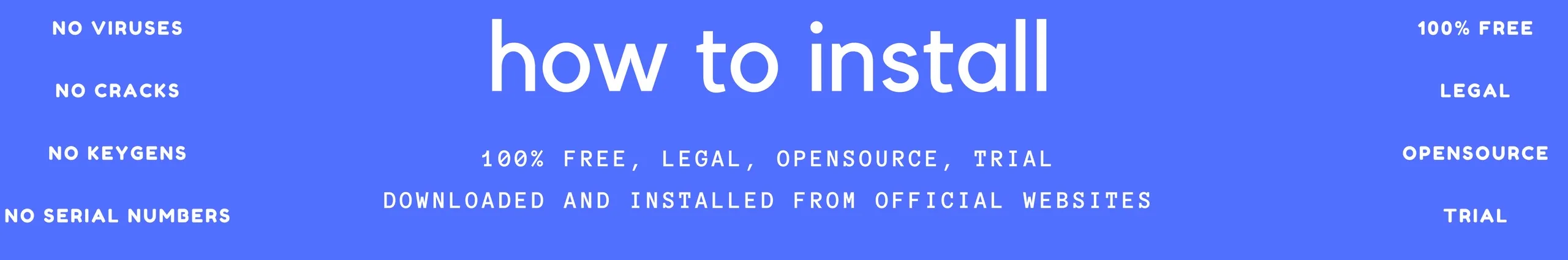 Hi. On our channel you can find tutorials of how to install various free or trial programs on Windows. In our tutorials all these programs were downloaded and installed from their official websites. On our channel you CAN'T find pirate software, cracks, keys, key generators, serial-numbers...