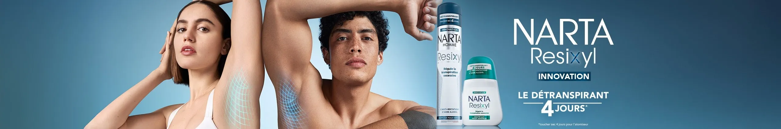 Leader des déodorants en France en grande surface, Narta propose des réponses à toutes les attentes des femmes et des hommes en terme de transpiration.