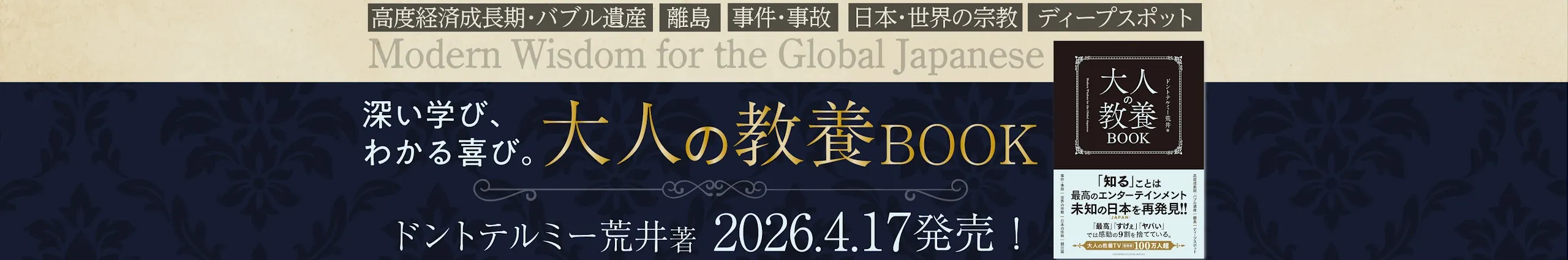 ドントテルミー荒井から学ぶ、今さら聞けない「一般教養」。 歴史・政治経済・社会問題などなど、大人の教養TVでは幅広いジャンルの教養をどこよりもわかりやすく解説!!