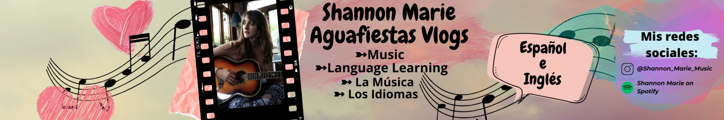 Languages, Music, Vlogs ❤️ Hi! My name is Shannon Marie. I'm a language enthusiast and musician. I originally started this channel to force myself to practice my Spanish and since then it's turned into a creative outlet where I share vlogs from my life, original music as well as covers, and language learning content. I'm always looking for other artists and creatives to collaborate with so please feel free to reach out, and if you'd like to support my journey as an independent musician, there is a link to join my Patreon below. Thanks for being here. I hope you stay a while. ¡Hola! Hola, me llamo Shannon Maríe. Soy una amante de los idiomas y la música. Empecé este canal para obligarme a practicar mi español y desde entonces se ha convertido en una salida creativa donde comparto vlogs de mi vida, música original y contenido en español. Si no hablo español en mis videos, siempre escribo subtítulos- por favor, corrige los errores! Eso me ayuda a aprender. Gracias por estar aqui :)