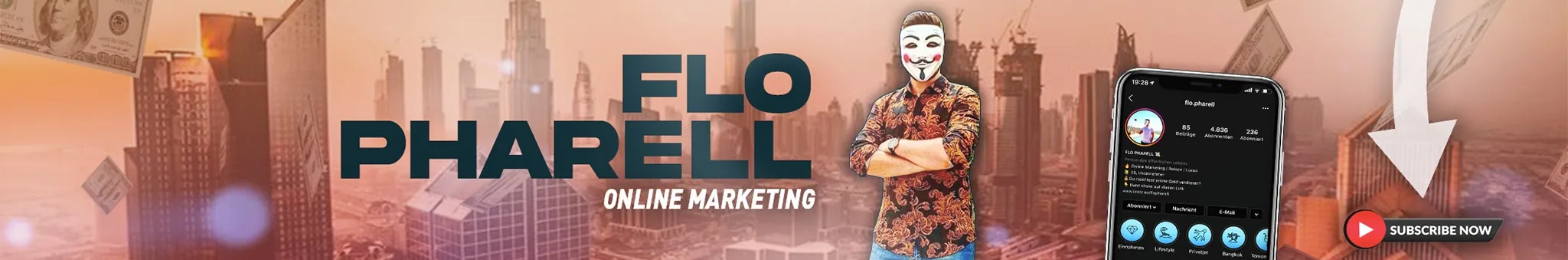 Herzlich Willkommen auf meinem Kanal! Mein Name ist Flo Pharell, ich bin Internet Unternehmer und liebe es zu Reisen. Ich möchte mein Wissen mit Dir teilen, damit auch Du finanzielle Unabhängigkeit erreichst und endlich Dein Leben so frei leben kannst, wie du es möchtest! Ich freue mich Dich auf meine Reise mitzunehmen (wenn Du mich abonnierst) und Dich auf Deiner Reise zu begleiten. Beste Grüße, Flo Pharell